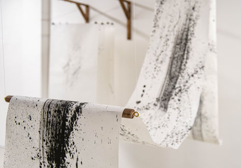 'Connecting Lines' 2020, instillation of oil pastel on Somerset paper and on wall.